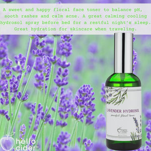 Lavender Hydrosol is the steam distillate from the fresh, organic lavender blossom (Lavandula angustifolia). It is a favorite floral hydrosol widely used health & beauty products for skin and hair. It is known to help address skin problems related to acne and rashes. Lavender Hydrosol is wonderful as a soothing, hydrating & relaxing toner.